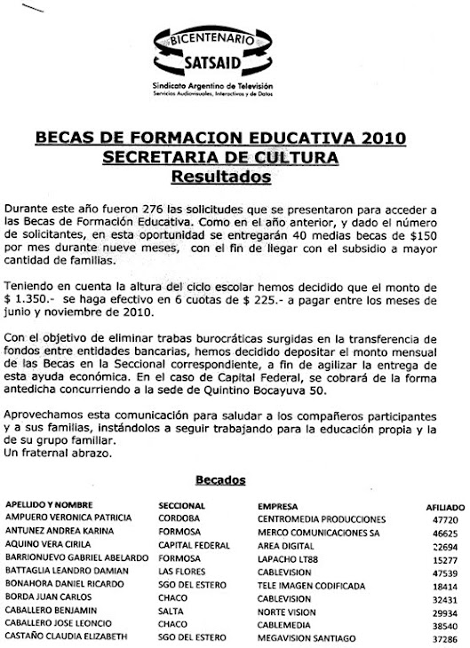 COMUNICAMOS QUE DESDE EL 2 DE JUNIO Y POR MOTIVOS PERSONALES EL COMPAÑERO SEBASTIAN DEUS NO PERTENECE MAS A LA EMPRESA, POR LO TANTO HA DEJADO DE SER DELEGADO CONGRESAL.