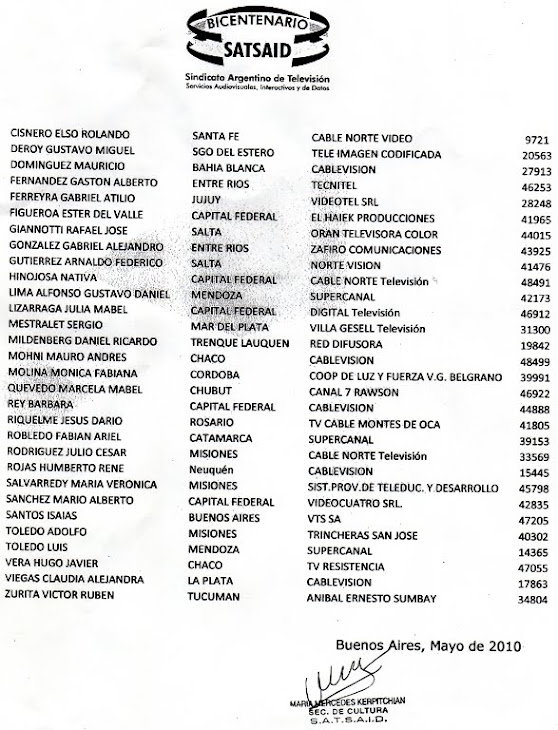 COMUNICAMOS QUE DESDE EL 25 DE JUNIO LOS DELEGADOS DE PERSONAL SALOME FERRARI Y MIGUEL FERNANDEZ NO PERTENECE MAS A LA EMPRESA, POR DECISIÓN PROPIA. POR LO TANTO HAN DEJADO DE FORMAR PARTE DE ESTA COMISIÓN.